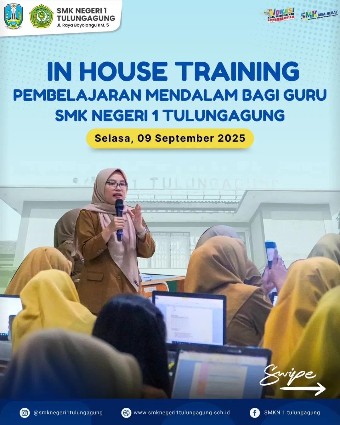 Melalui In House Training bertema "PEMBELAJARAN MENDALAM BAGI GURU" pada Selasa, 9 September 2025, para guru SMKN 1 Tulungagung bersama-sama menggali makna pembelajaran yang lebih dari sekadar transfer ilmu dengan merancang proses belajar yang berkesadaran, bermakna, dan menggembirakan bagi siswa maupun guru itu sendiri.